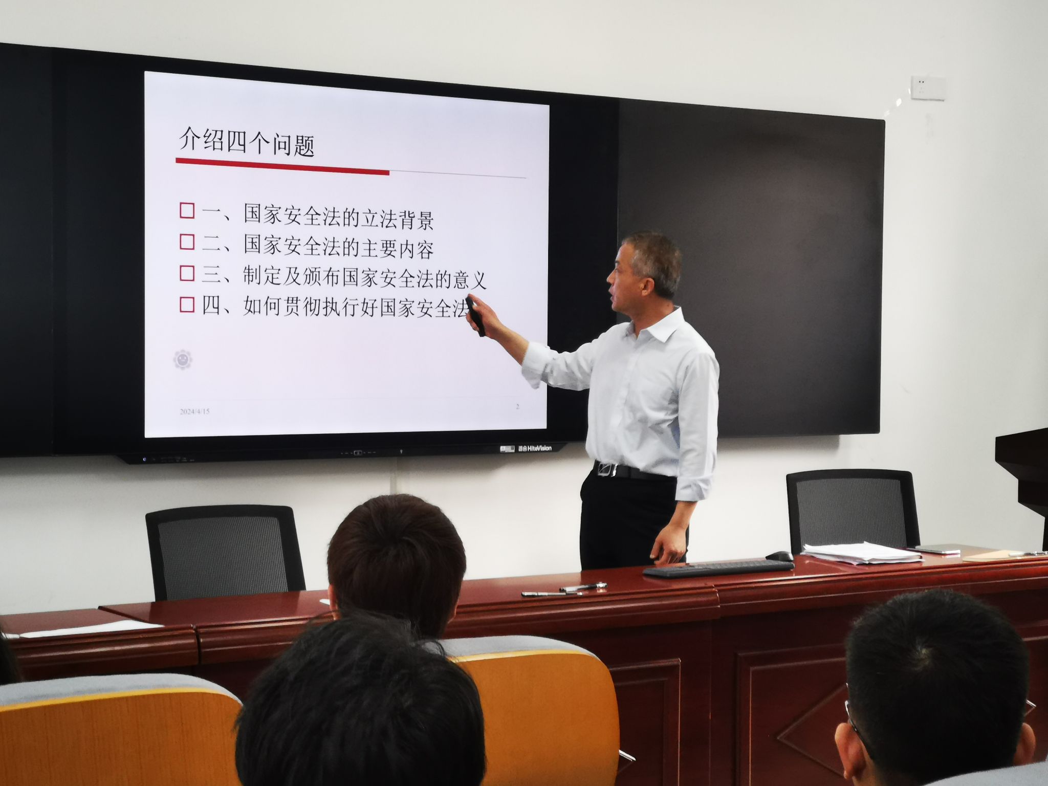 4月15日,成人在线 在龙赛理科楼北楼314报告厅举办2024年全民国家安全教育宣讲会,学院党政领导、组织员、学生党建辅导员、各教工党支部书记、学院党建中心各负责人参加,会议由学院党委书记朱学庆主持并宣讲。