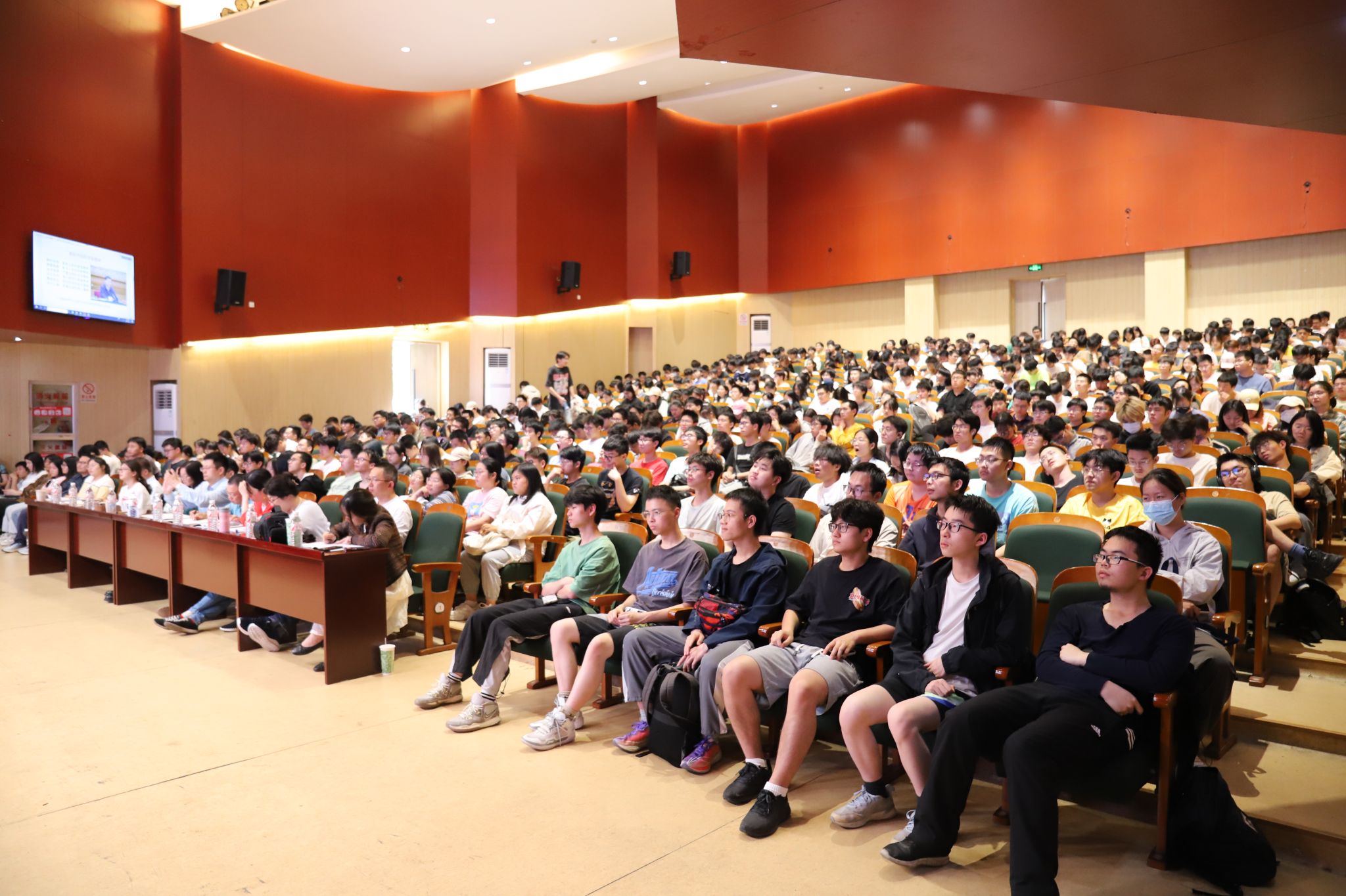5月22日,校长蔡荣根院士在忻元甫报告厅以“弘扬科学家精神——以彭桓武先生为例”为主题,为成人在线 和阳明学院440余名师生讲授“形势与政策”课。