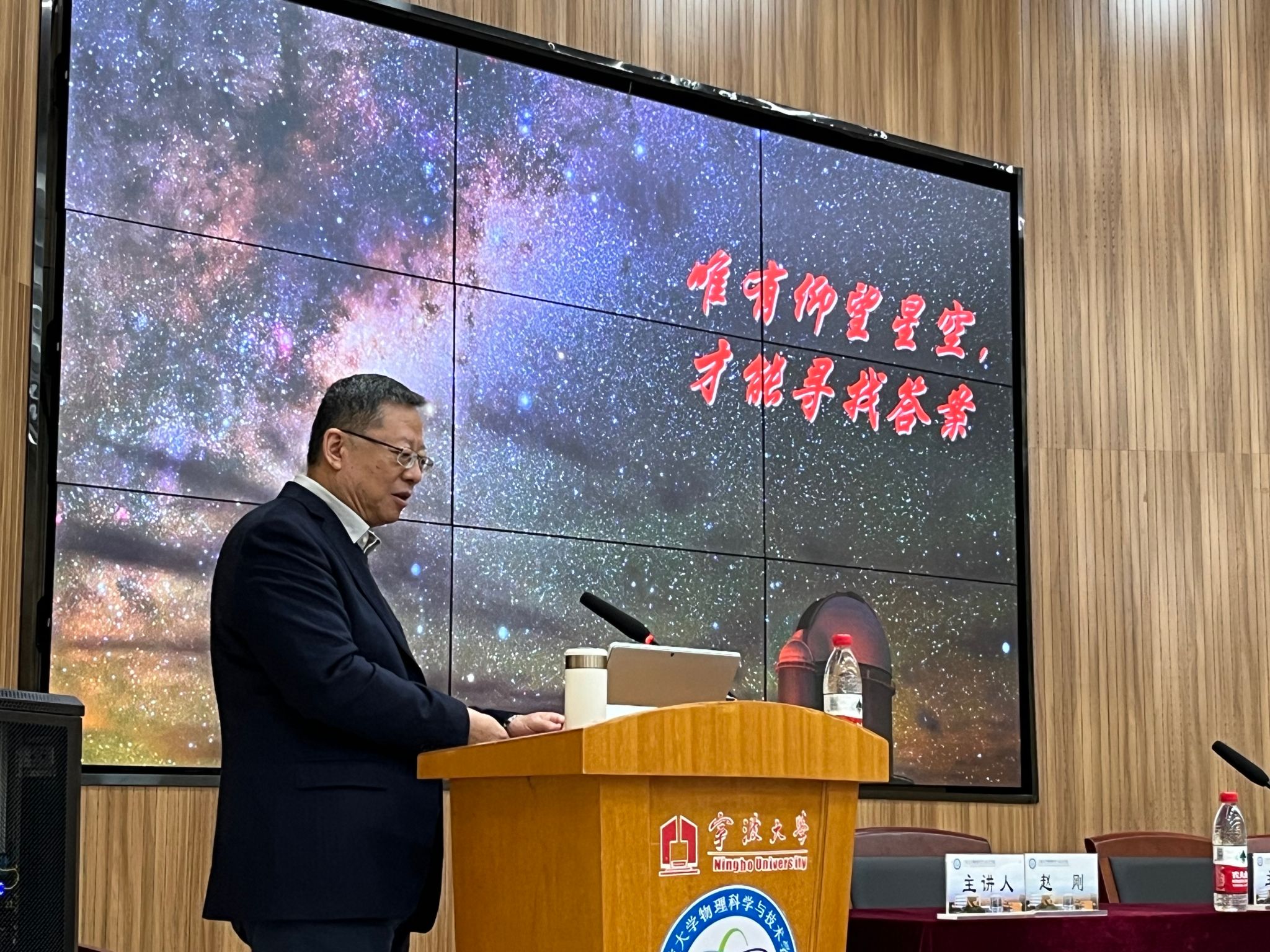段香梅院长首先对赵刚院士的到来表示热烈欢迎和衷心感谢。她向在座师生介绍,赵刚院士作为中国科学院院士、中国科学院国家天文台研究员、LAMOST科学委员会主任,在恒星元素丰度、太阳系外行星、银河系形成与演化、实验室天体物理等领域颇有研究,成果多次被评为中国年度十大天文科技进展,其中“利用恒星丰度探索银河系化学演化的研究”获国家自然科学二等奖。此外,赵院士还担任国家自然科学基金委“基础科学中心”项目负责人、国家重点研发计划“基于LAMOST巡天的银河系研究”项目首席科学家。
