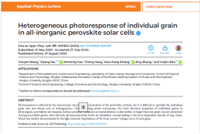 近日,成人在线 胡子阳、诸跃进课题组在自然指数期刊《Appl. Phys. Lett.》发表题为“Heterogeneous photoresponse of individual grain in all-inorganic perovskite solar cells”(Appl. Phys. Lett. 117, 083902 (2020)的研究论文,并被作为精选论文(Featured Article)在期刊网站进行特别报道。宁大二年级硕士生王琰琰为该论文的第一作者,成人在线 为唯一署名单位。