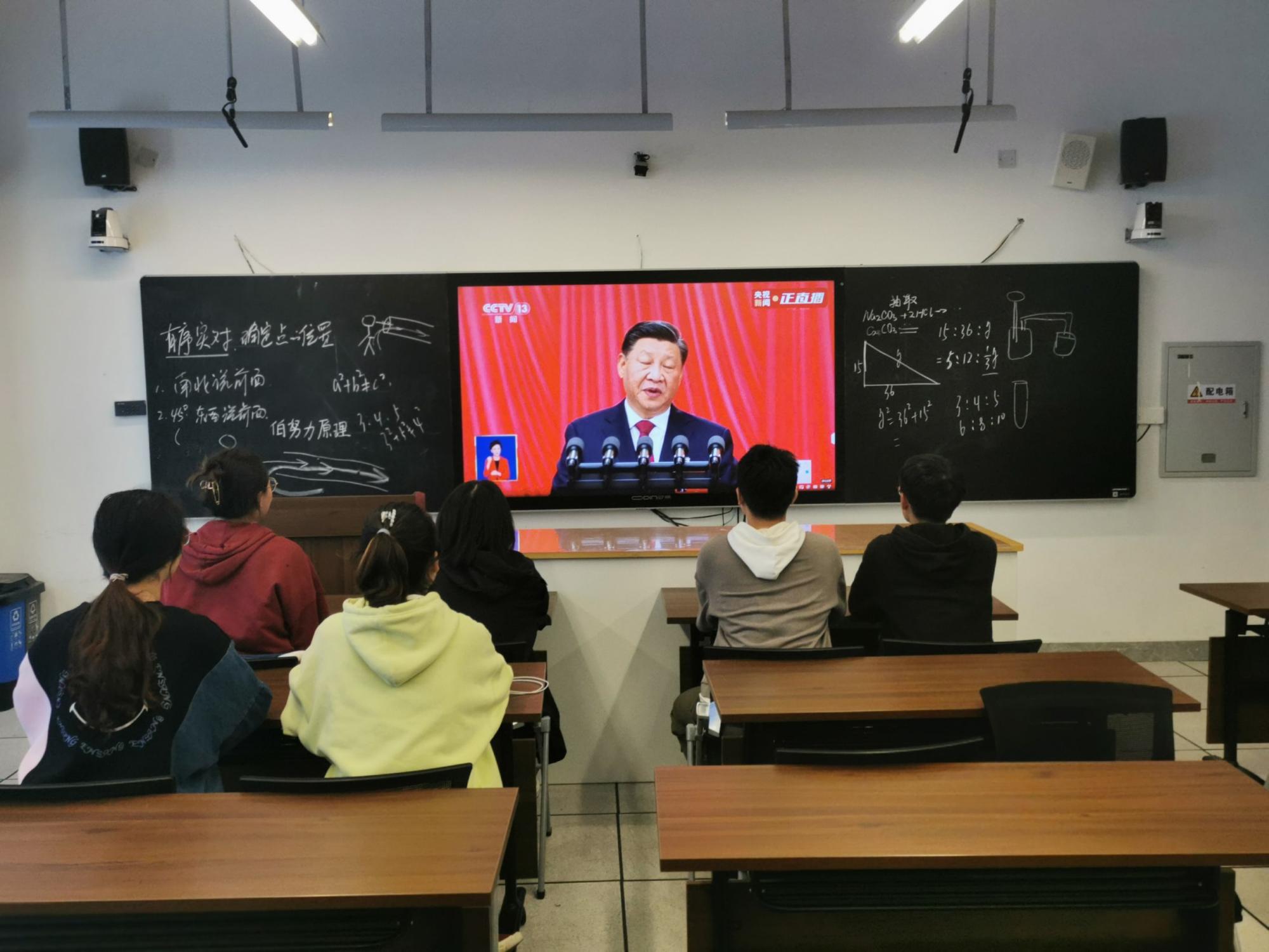 上午10时,学院党委组织领导班子成员、师生党员、团员代表、辅导员等70余人在314会议室集中收看了二十大盛况。各班级党、团支部也结合实际,通过网络、手机收看了开幕会。