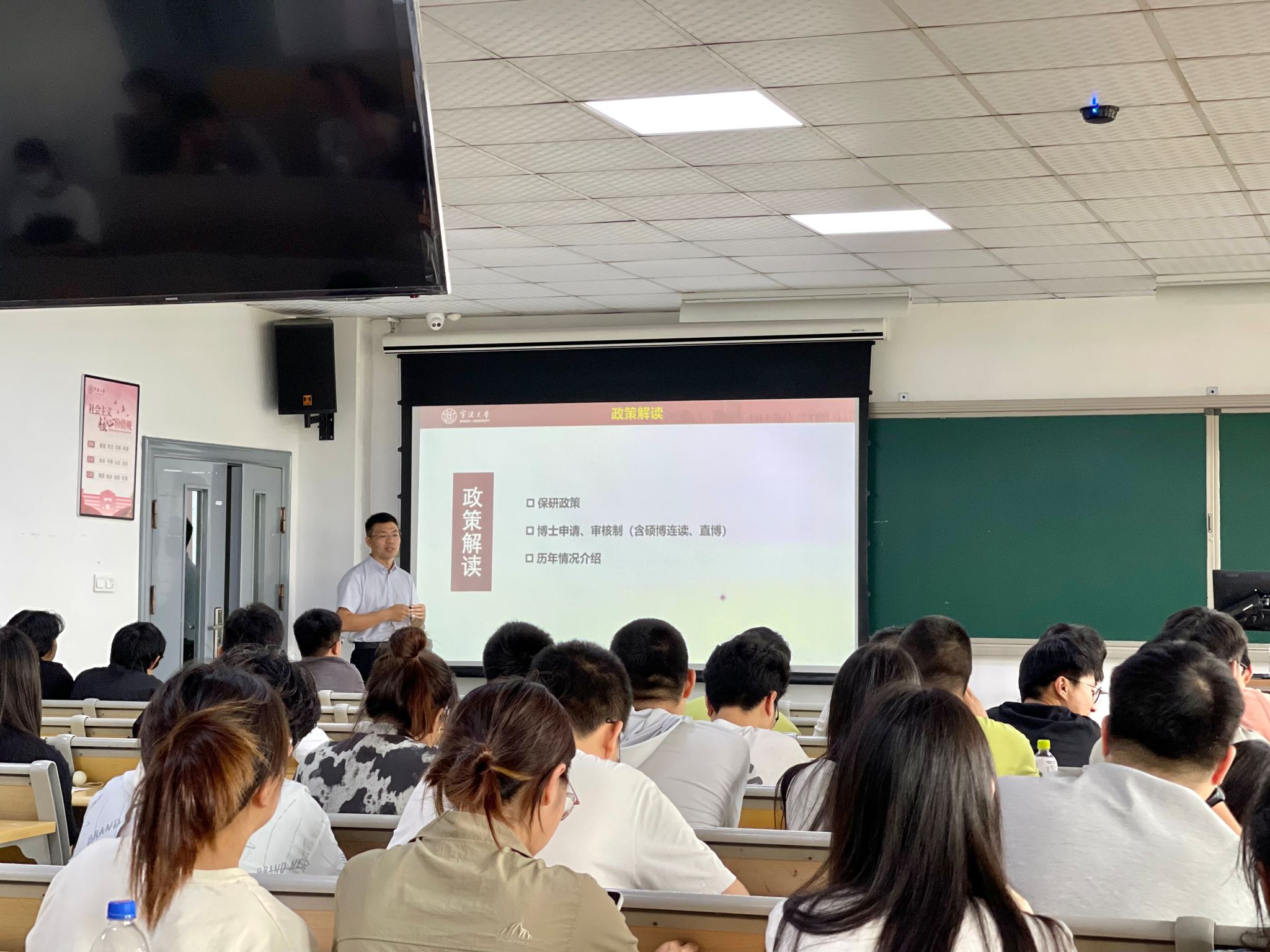 2023年6月29日下午,成人在线 在8-101举办了2024级硕博招生宣讲会。宣讲会由学院分管研究生教育工作的高淼老师主讲,活动主要面向本校2020级本科生、2021级硕士生,现场吸引了百余名学生参加本次宣讲会。