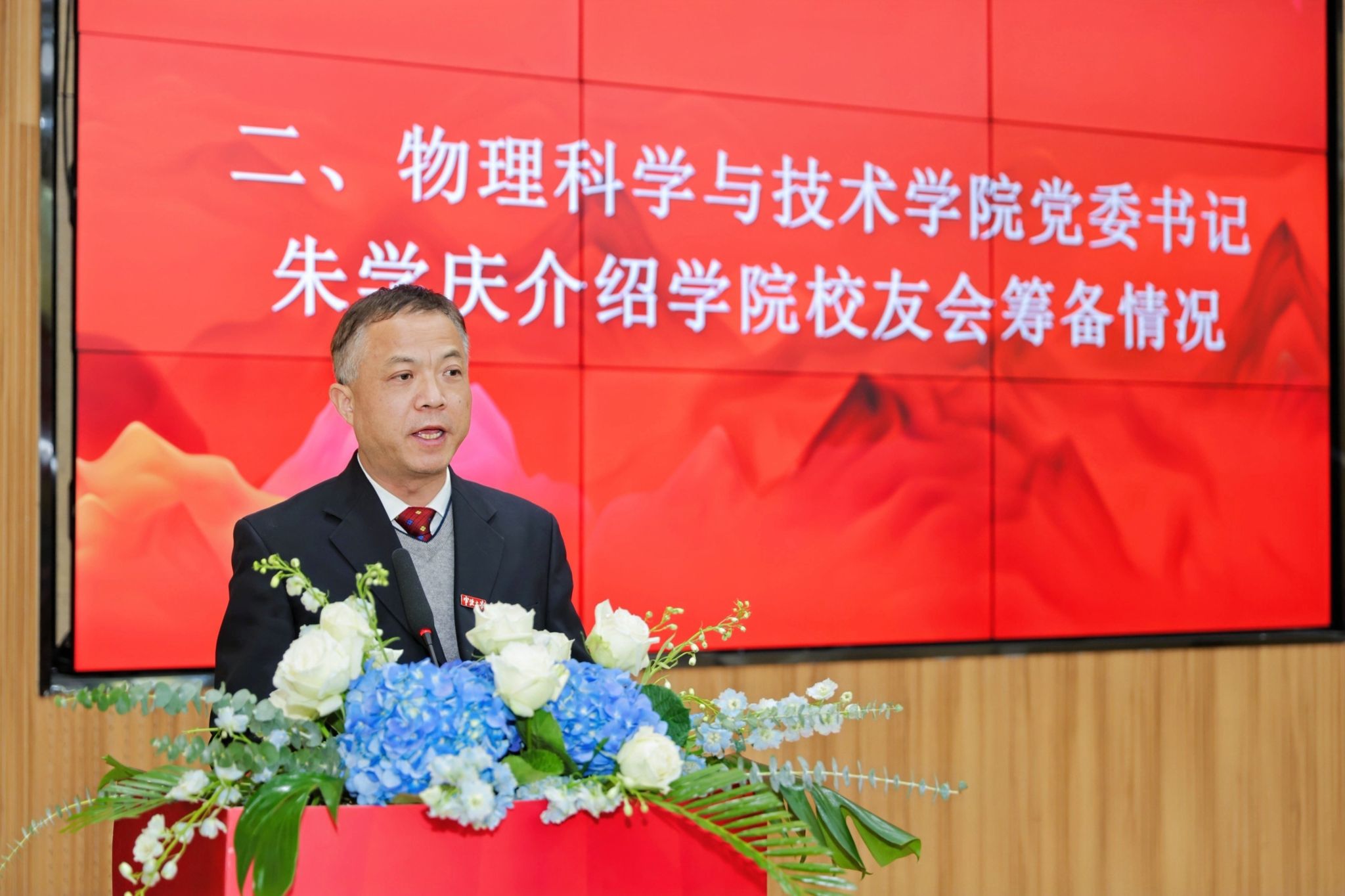 党委书记朱学庆作学院校友会筹备工作报告。他表示,学院校友会的成立标志着校友会筹备工作取得了阶段性的成果,在各方的共同努力下,物理科学与技术学院校友会顺利完成筹备工作,在广泛征求意见的基础上,确定了校友会的组织架构和理事会建议名单。