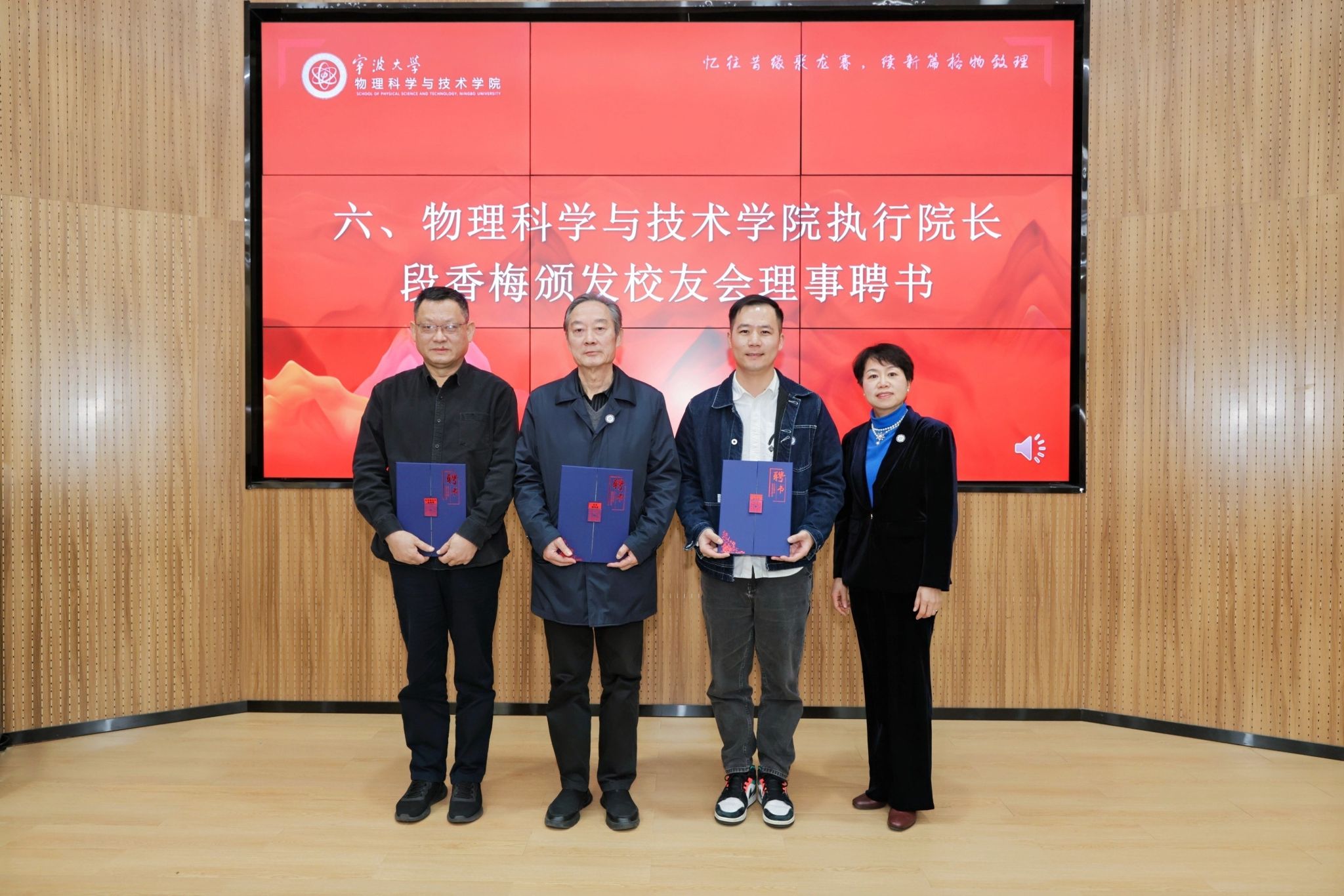 大会审议并通过了《宁波大学物理科学技术学院校友会章程》,大会宣读了物理科学与技术学院校友会第一届理事会名誉会长、顾问、名誉理事名单,并选举产生第一届理事会理事。党委书记朱学庆为学院校友会第一届理事会顾问、名誉理事颁发聘书,执行院长段香梅为第一届理事会理事代表颁发聘书。