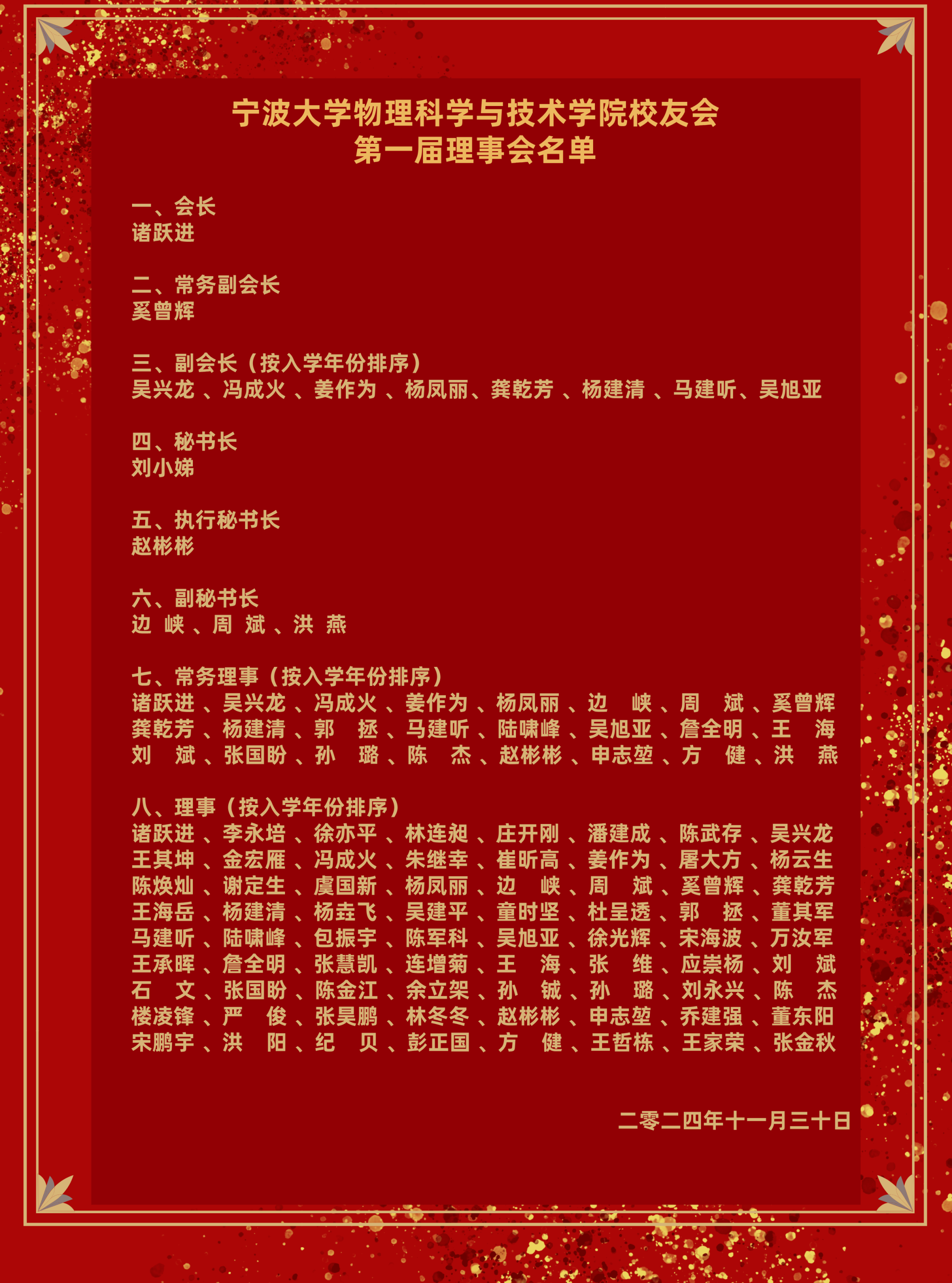 宁波大学物理科学与技术学院第一届校友会理事会名单