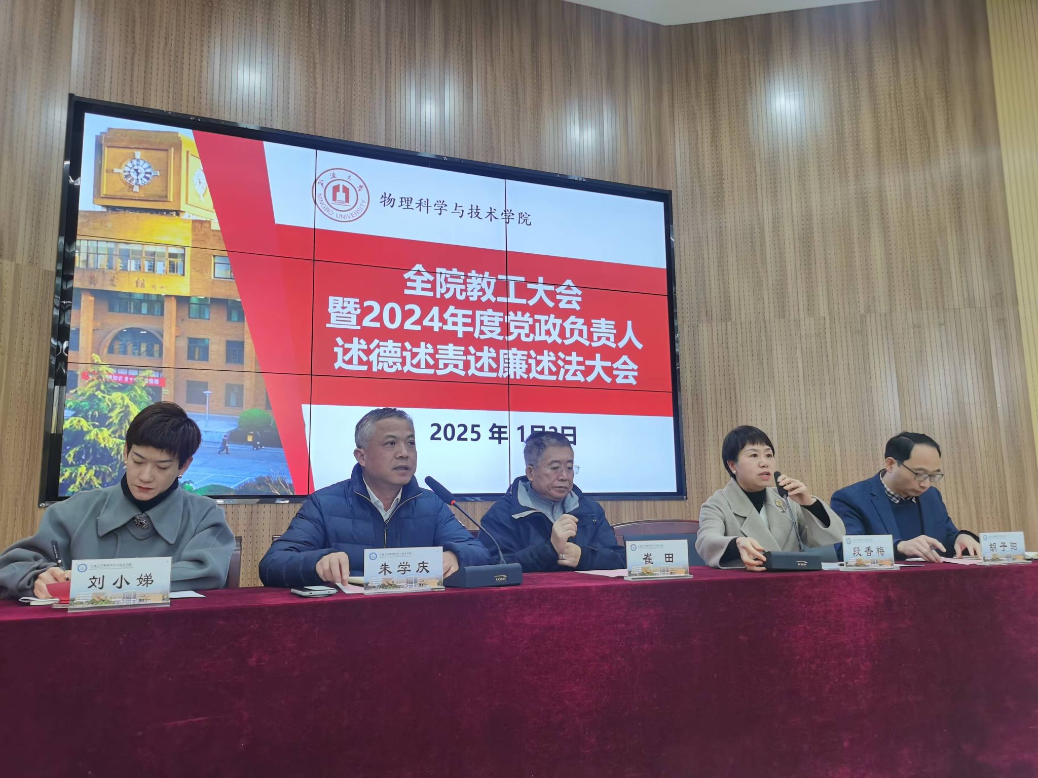 1月3日,成人在线 在龙赛报告厅召开2024年度全院教工大会暨党政负责人述德述责述廉述法大会。学院党政领导成员、全院教职员工参加会议,会议由院党委书记朱学庆主持。