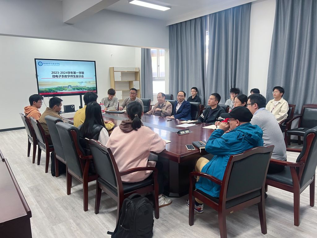 11月22日中午,微电子系在龙赛理科楼北楼228会议室顺利举行2023-2024学年第一学期期中师生座谈会。物理学院教学副院长胡子阳、副书记刘小娣、教务办主任、教师代表和微电子系学生代表参加了此次会议。会议由微电子系主任陈达主持。