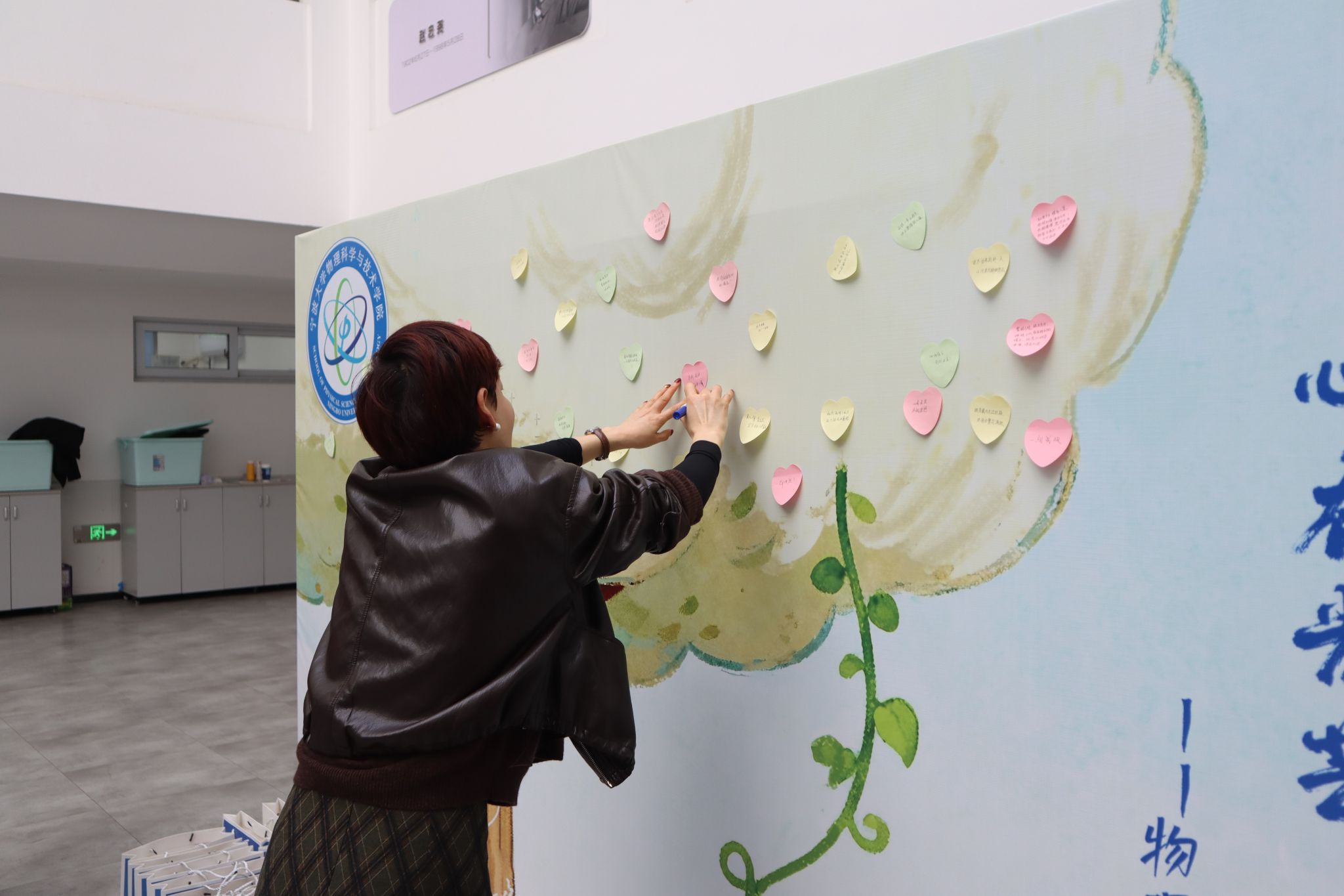 活动前夕,学院的关怀已悄然浸润每个细节。院领导与老师们为考研学子亲手书写祝福贺卡—— 一字一句凝牵挂,一笔一画寄期许;并参与“暖心加油包”的装袋整理,将文具、暖贴、零食等物资细心分装。从笔墨真情到实物传递,这份亲手准备的温暖,让关怀从心意化为行动,赋予学子们踏实前行的力量。活动当日,大厅里暖意融融。那面早早立起的“祝福墙”,早已被层层叠叠的便利贴装点成一道动人的风景。这里有学弟学妹真挚的加油,有同窗战友并肩的誓言,也有考研人为自己许下的期许。“一战成硕!”“我们顶峰相见!”……真挚的话语交织成无形的力量网络,让每位驻足其前的学子,都感受到自己并非孤军奋战。活动现场,学院精心准备的“暖心加油包”成为最实在的温暖载体。其中不仅有笔、尺、橡皮等齐全的备考工具,更有暖宝宝、能量零食、橙子等饱含心意的冬日关怀。学子们有序领取,笑意盈盈。一份份礼包,递出的是实用的支持,更是“物院始终与你同在”的深沉陪伴。