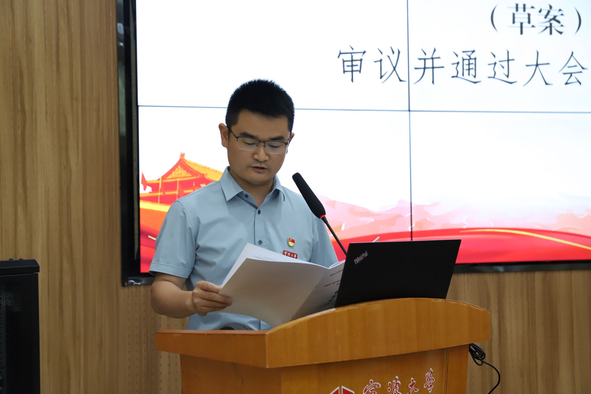 大会在雄壮的国歌声中正式开启,物理科学与技术学院党委书记朱学庆代表上一届党委作题为《凝心铸魂共奋进,踔厉奋发谱新篇努力——开创物理科学与技术学院高质量发展新局面》的工作报告,报告总结了过去五年学院在党建工作、学术研究、学科发展等方面取得的成绩,同时强调要以高水平党建引领学院高质量内涵式发展,并聚焦基层党建、人才培养、师资队伍、学生工作等方面,对未来五年工作进行展望和部署。