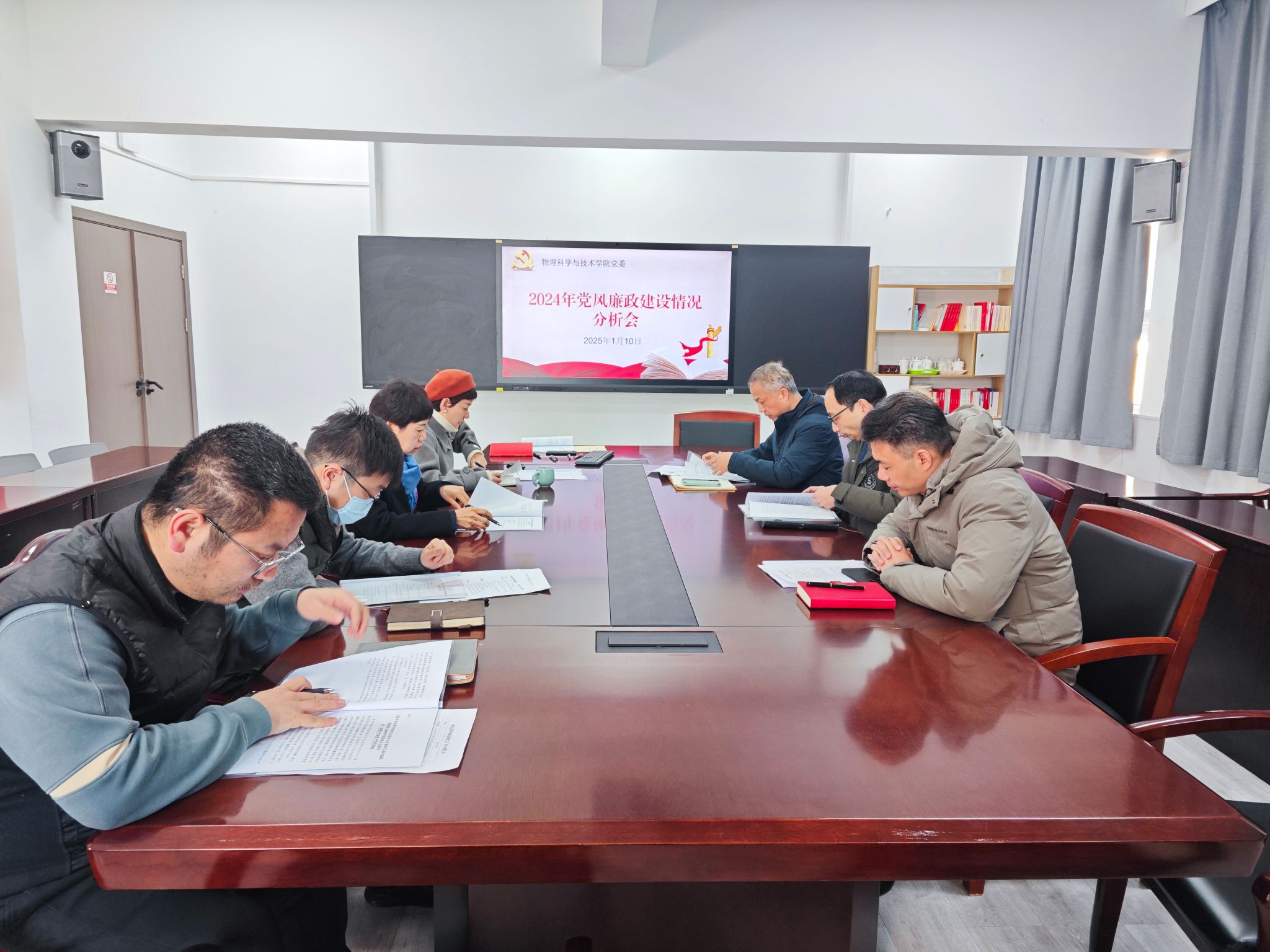 1月10日,物理科学与技术学院党委在龙赛理科楼北楼228“党员之家”召开2024年党风廉政建设情况分析会,会议由学院党委书记朱学庆主持,学院全体党委委员参加。会上,与会人员共同学习了《习近平在中共中央政治局第十五次集体学习时强调:贯彻落实新时代党的建设总要求进一步健全全面从严治党体系》《关于认真开好2024年党风廉政建设情况分析会的通知》等内容,提高政治站位,强化廉洁担当。学院党委书记朱学庆代表党委班子对2023年党风廉政建设落实情况进行“...