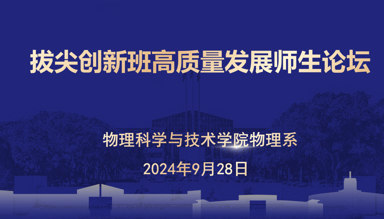 9月28日下午,物理科学与技术学院拔尖创新班高质量发展师生论坛在龙赛理科楼报告厅举行,物理系主任汤世伟、学工办主任常文豪、拔尖创新班班主任黄艳萍、贾曼老师参加大会,参加大会的还有学院全体拔尖创新班成员。在热烈的掌声中,物理系系主任汤世伟教授以饱满的热情致开场辞。他向新加入的同学们表达了热烈的欢迎,并介绍了出席论坛的教师团队。汤老师在致辞中强调,创新班的学生是物理学院响应国家号召,开展拔尖人才培养的重要创新举措。...