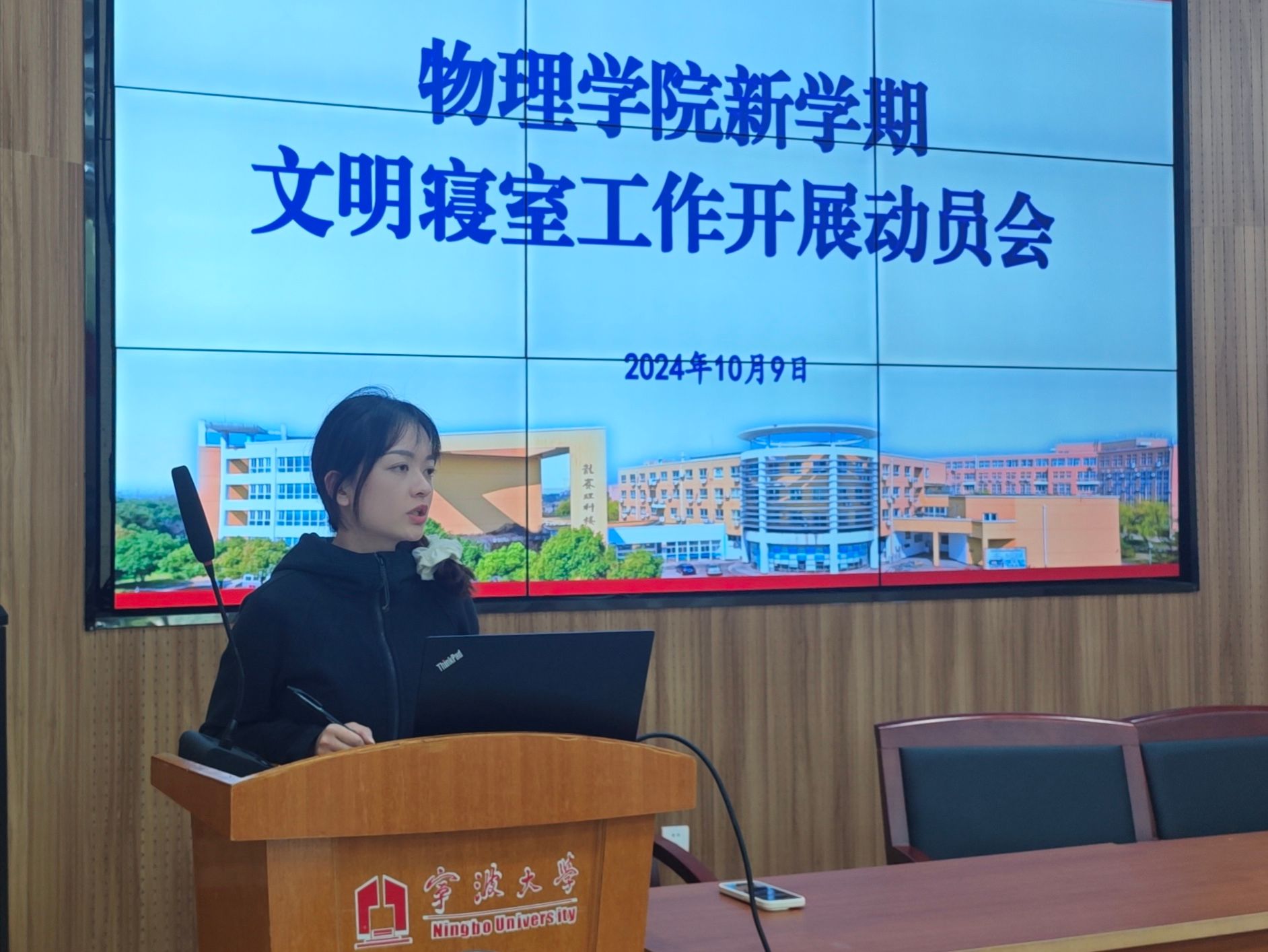 为营造整洁、和谐、积极向上的学习和生活环境,10月9日,物理科学与技术学院在龙赛报告厅召开新学期文明寝室建设工作动员会,学院党委副书记刘小娣、负责寝室工作的辅导员陈玉珂、本研学生代表参加会议。此次会议旨在明确新学期文明寝室建设的目标与要求,动员全体师生积极参与,共同推动文明寝室建设工作的深入开展。会上,学院党委副书记刘小娣首先发表动员讲话。她强调,寝室不仅是同学们学习、生活的重要场所,更是学院精神文明建设的重要窗口,...