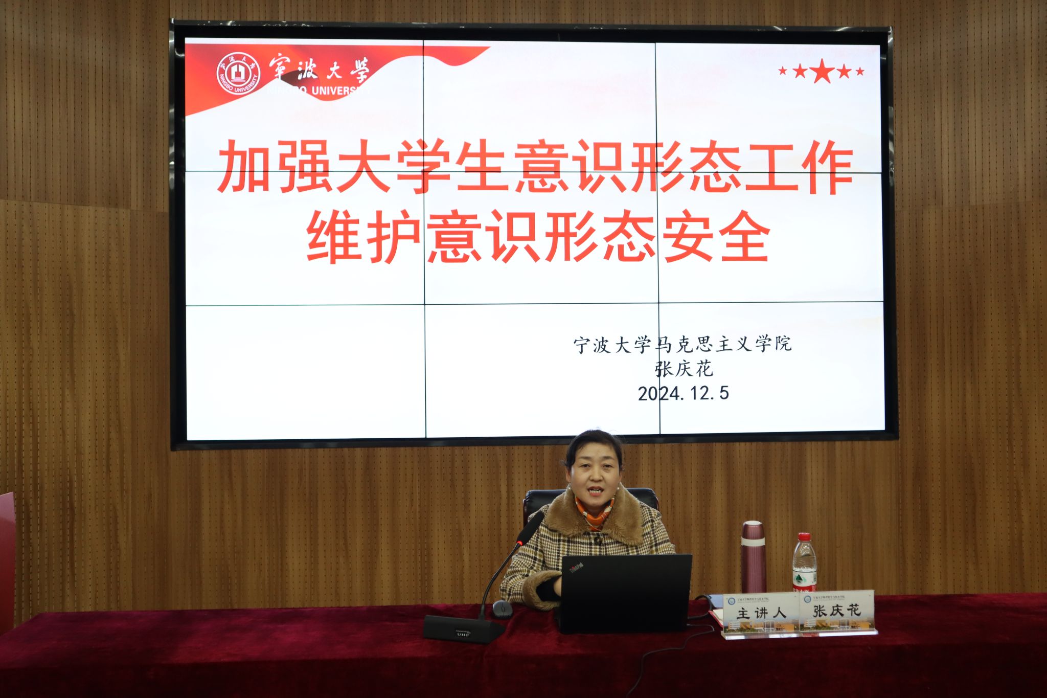 12月5日,马克思主义学院张庆花副教授在龙赛报告厅为物理科学与技术学院学生主讲题为“加强大学生意识形态工作,维护意识形态安全”的“形势与政策课”,100余位本科生参加。张老师从“什么是意识形态”“为什么意识形态工作极端重要”“意识形态工作所面临的挑战”和“加强大学生意识形态的有效措施”四个方面讲解高校意识形态工作的必要性。她指出,意识形态是上层建筑的重要组成部分,是对社会存在的一种反应,对社会的发展起着巨大的能动作用,...