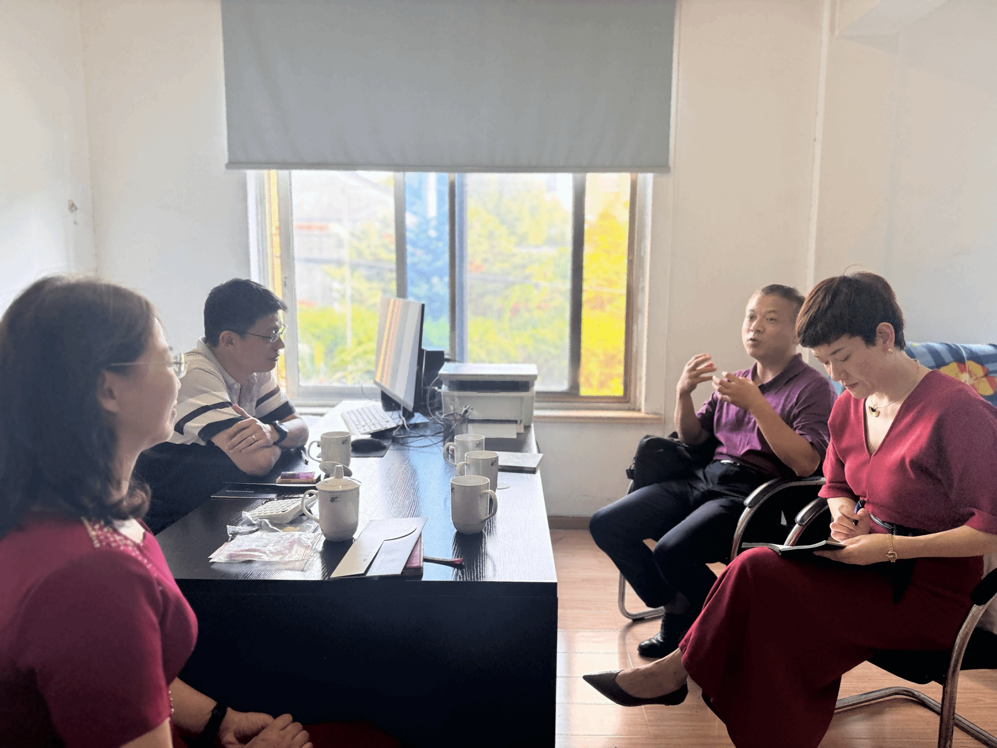 随后,学院一行人又前往慈溪拜访了1984级校友杨风丽女士、1991级校友包振宇先生,受到两位校友的热情接待。刘小娣副书记介绍了近半年来物理科学与技术学院校友会筹备的进展,认真听取了校友们对校友会组织架构、活动形式等方面的宝贵意见。双方表示,校友会的成立不仅是对校友们成就的认可,更为校友们提供了一个交流思想、分享资源、促进合作的宝贵平台,要持续凝聚校友力量,为学院高质量发展作贡献。