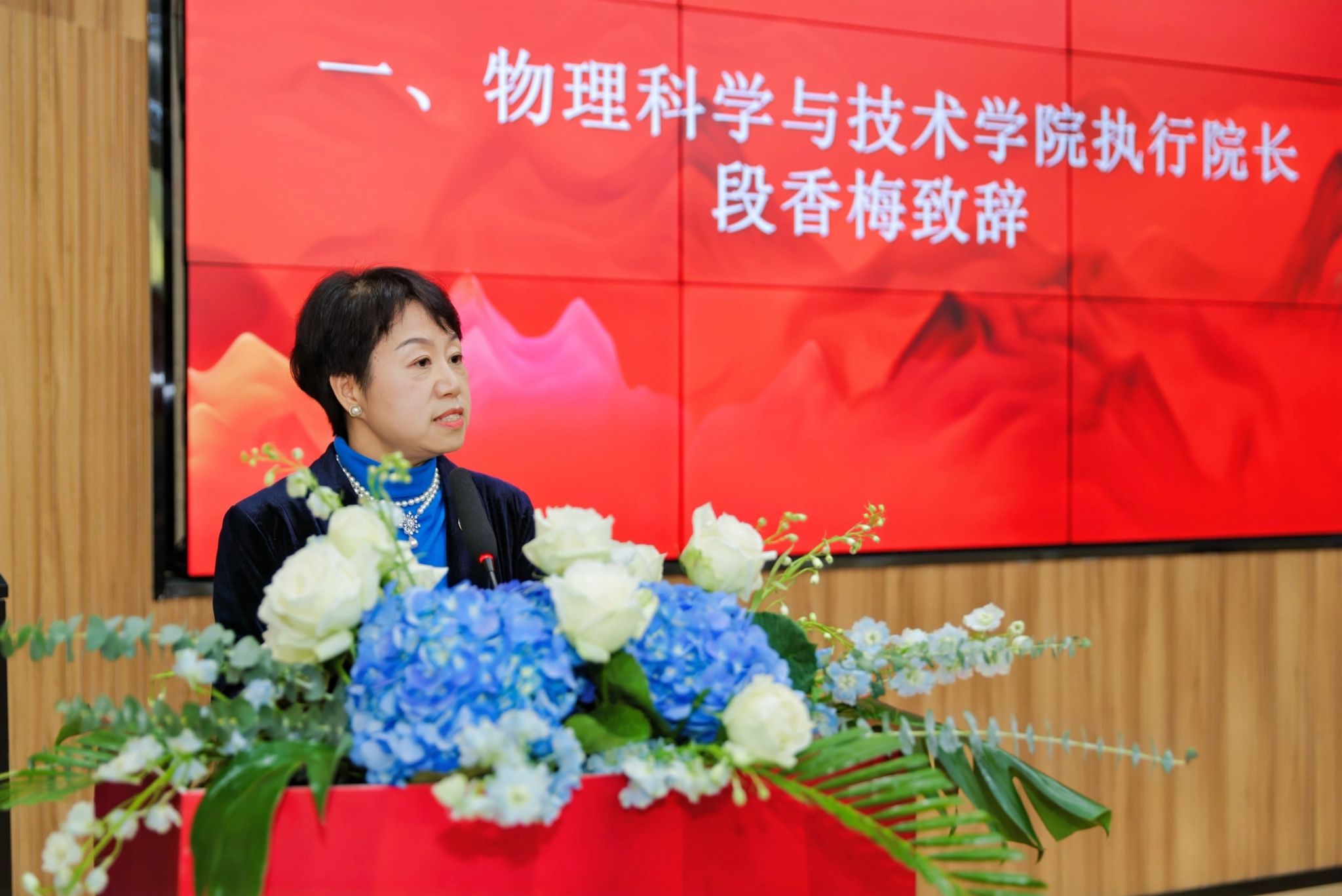 执行院长段香梅致欢迎辞,她回顾了物理科学与技术学院六十余年来的办学历程,介绍了学院目前在学科建设、师资队伍、人才培养等领域取得的成效。她强调,学院的迅猛发展离不开广大优秀校友的关心与支持,校友会的成立建立起校友与母院的沟通桥梁,搭建了校友之间资源共享、联络感情的平台,她呼吁校友们倾情母院、关怀母院、助推母院,携手共绘母院新的辉煌与荣耀。