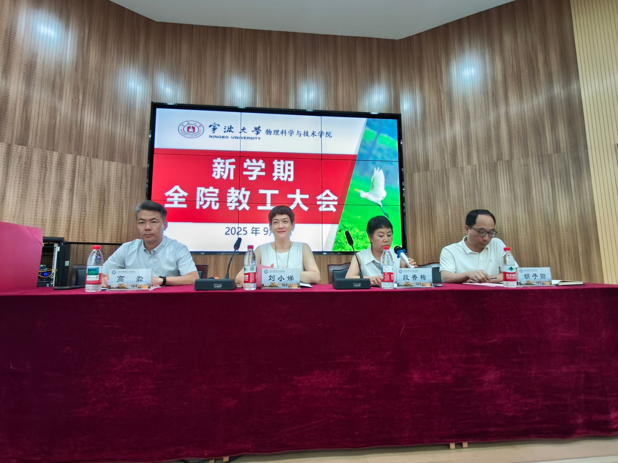 9月5日,物理科学与技术学院召开新学期全院教工大会,学院党政领导班子成员和全院教职工参加会议,会议由执行院长段香梅主持。