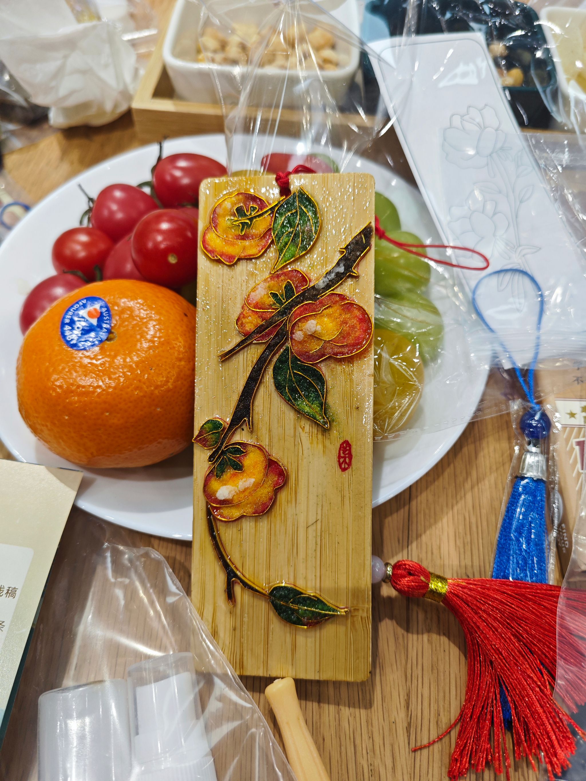 最后的手工互动环节更是将活动氛围推向高潮,导师和学生们在专门指导老师的示范下,组队参与了“柿柿如意”掐丝书签制作。每位参与者亲手设计并制作的书签,不仅象征着对未来美好生活和科研成果的期许,更在过程中增进了师生之间的沟通与理解。活动结束后,大家纷纷展示自己的作品,现场充满了欢声笑语。