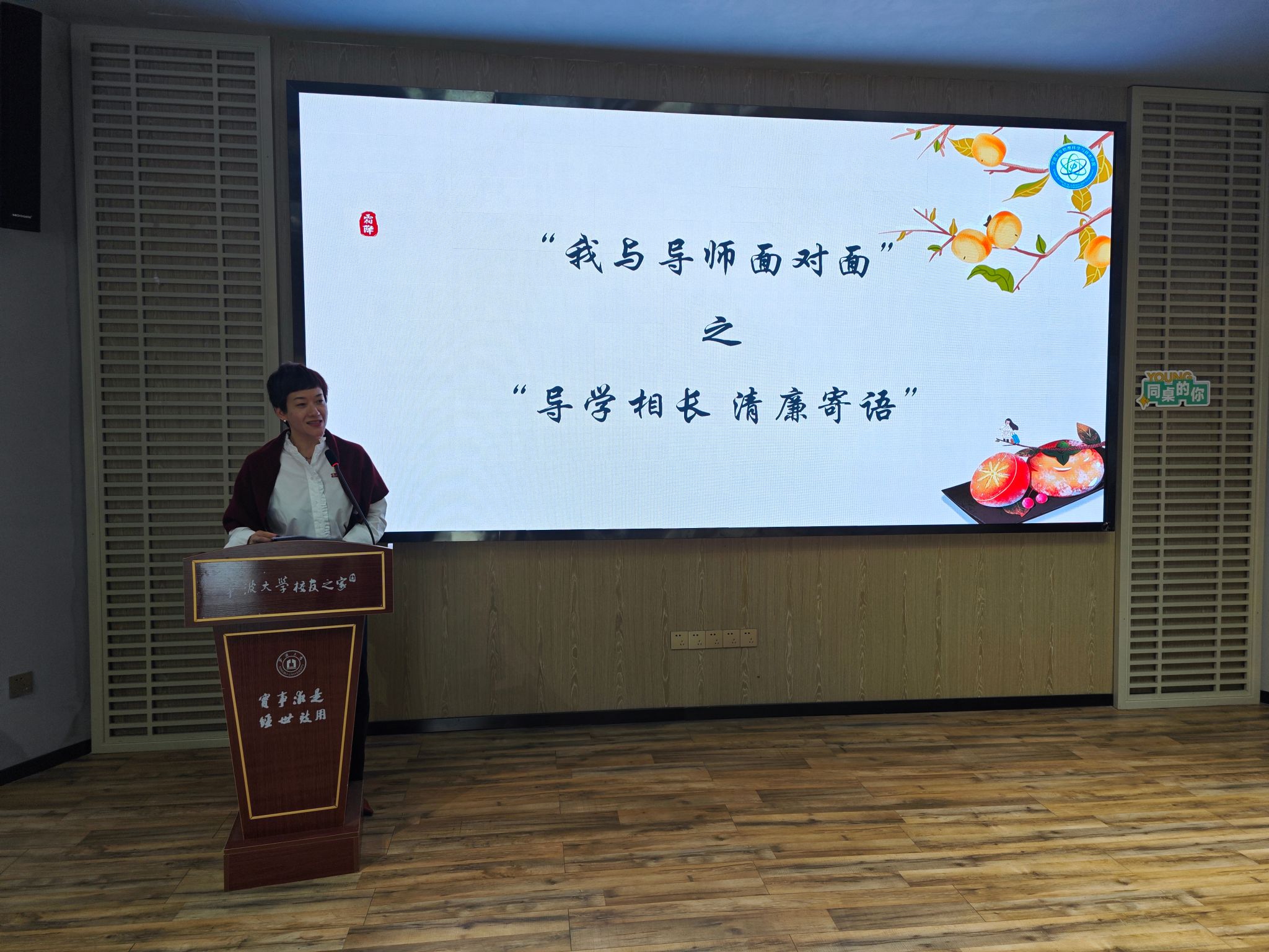活动伊始,学院党委副书记、纪委书记、关工委副主任刘小娣结合多年学生工作经验深入浅出地分享构建和谐导学关系的核心要素,学院要构建师生民主平等、理解尊重、关系融洽的良性互动导学关系,是加强研究生培养和教育的基本要求。她借霜降之契机,在秋风萧瑟、白露为霜的氛围中,勉励全体师生保持高尚的道德情操,坚持科研诚信,严于律己,以清正廉洁的态度面对学术研究与日常生活,共同营造风清气正的学术环境。随后,刘小娣发表了“清廉寄语”,她借霜降这一节气,勉励全体师生在科研和日常生活中保持高尚的道德情操,坚守科研诚信,严于律己,以清正廉洁的态度面对学术研究,共同营造风清气正的学术氛围。她的讲话进一步激励了师生们在未来的科研道路上以更加坚定的信念和高尚的品德前行。