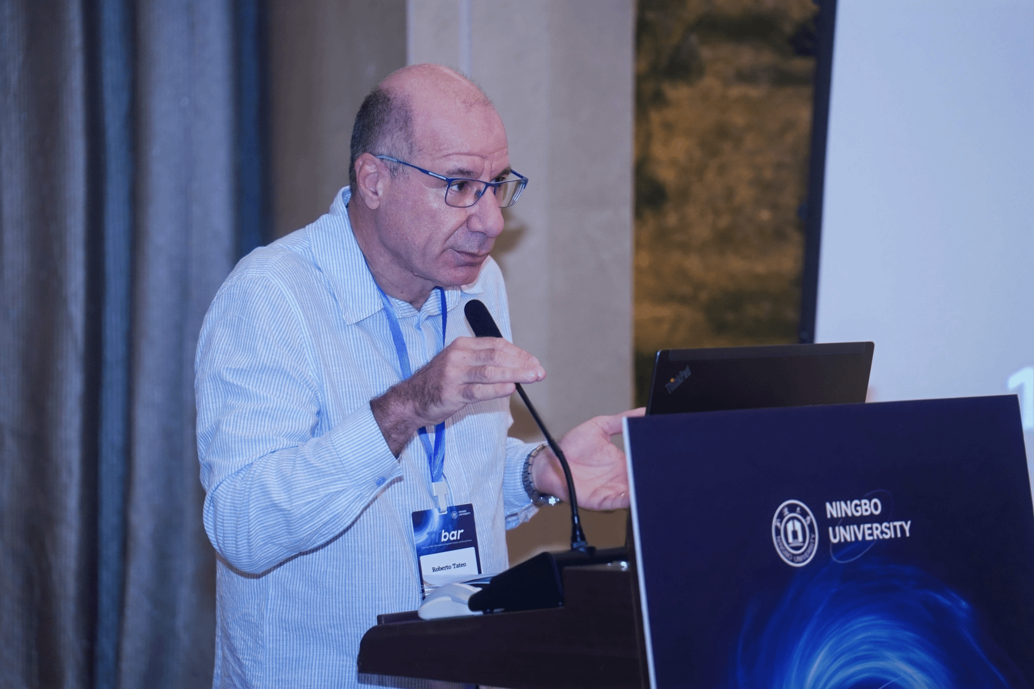 会议开幕式由基础物理与量子科技研究院的何松教授主持,研究院院长陈斌教授与Roberto Tateo教授相继致辞。他们首先对与会者的到来表示热烈欢迎,并简要回顾了宁波大学的发展历史,以及主办单位——基础物理与量子科技研究院在前沿理论物理领域的布局与发展,并诚挚邀请各位学者前来交流访问。三位教授强调了TTbar形变在量子场论和引力理论中的重要作用,指出其不仅是连通量子场论与引力的关键桥梁,更能为理解非微扰量子场论与黑洞物理开辟崭新视角。他们希望本次会议能够激发思想火花、凝聚学术共识,构建高水准的对话与协作平台。