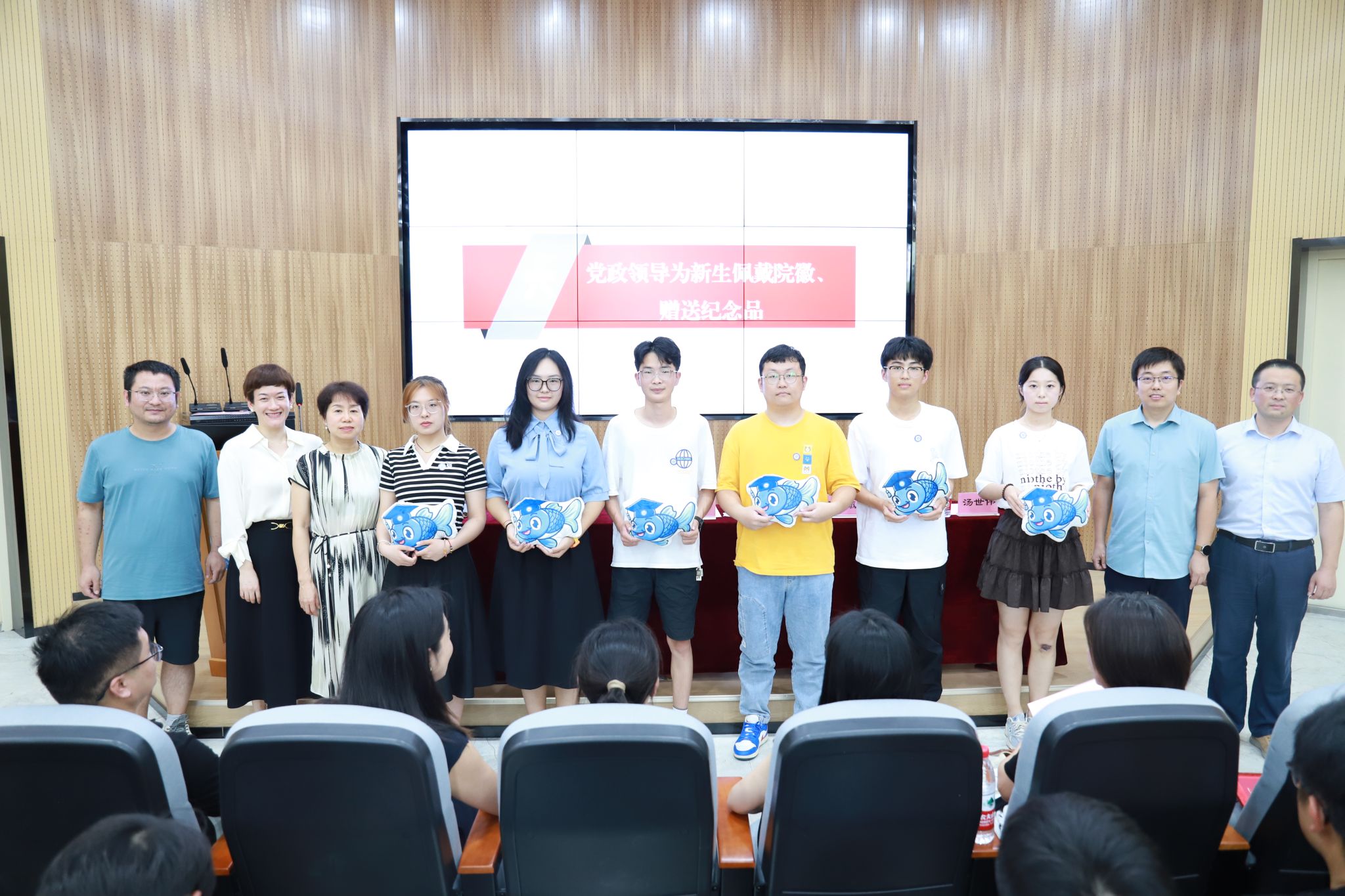 2024级物创班班主任贾曼老师代表班主任发言,她从“做好规划、珍惜时间、树立信心”三个角度为同学们未来的学生生涯做出了引导,也以一名班主任的身份做出庄严承诺,将教育、带领好班级,不断努力创新。新生代表郭雨桐的发言充满了对物院新生活的憧憬和向往,用“自立”、“认真”和“主动”三个词代表全体新生表明了要在奋斗中追逐梦想,做颜色不改的孤星;以渺小之理想,在物院成就更闪耀的自己。党政领导还为各新生班级代表佩戴院徽并赠送纪念品——学院吉祥物小“理”鱼,希望同学们如同小“理”鱼一般在知识的海洋里上下求索,经过在成人在线 的学习和成长,成为那条越过龙门的“理”鱼,迈向更美好的未来。