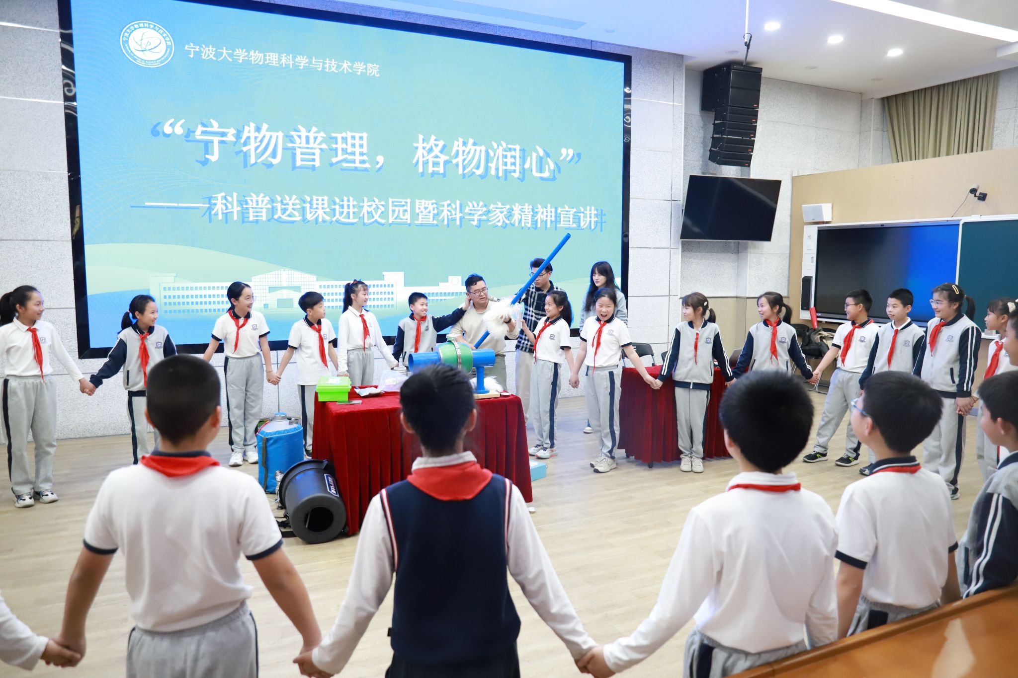 静电实验、超导磁悬浮……3月27日下午,一堂沉浸式体验科学魔术课堂在宁波市海曙外国语学校五江口校区拉开帷幕。为传承志愿服务精神,发挥“五老”以老带新作用,成人在线 “五老”人才库成员周骏教授和物理学院启明星科普宣讲团的师生们一起弘扬志愿公益精神,开展科普公益进校园活动,为该校五年级200余名小学生带来了一场别开生面的科普盛宴。