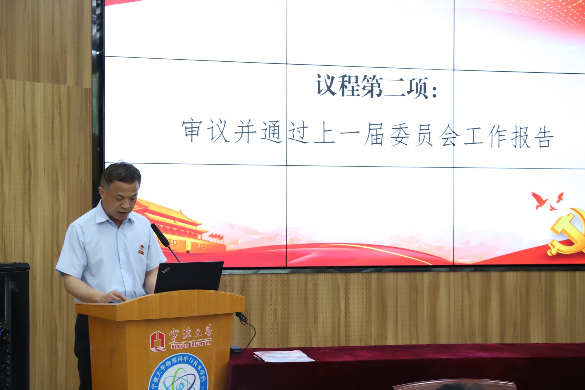 大会在雄壮的国歌声中正式开启,物理科学与技术学院党委书记朱学庆代表上一届党委作题为《凝心铸魂共奋进,踔厉奋发谱新篇努力——开创物理科学与技术学院高质量发展新局面》的工作报告,报告总结了过去五年学院在党建工作、学术研究、学科发展等方面取得的成绩,同时强调要以高水平党建引领学院高质量内涵式发展,并聚焦基层党建、人才培养、师资队伍、学生工作等方面,对未来五年工作进行展望和部署。