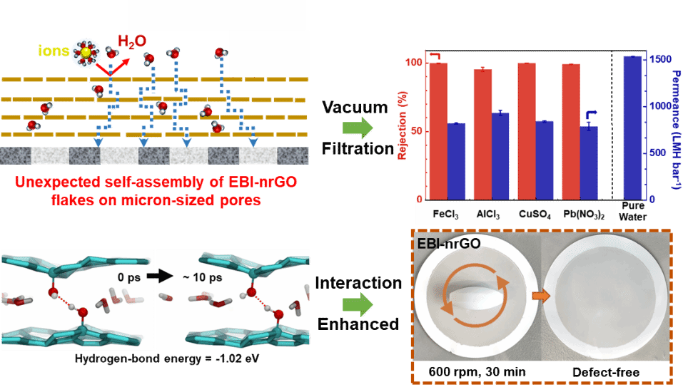 微纳系统表面物理团队联合扬州大学、国科院温州研究院在国际知名期刊Advanced Science(IF:14.3,双一区TOP)杂志上发表了题为《Unexpected Self-assembly of Nanographene Oxide Membranes upon Electron Beam Irradiation for Ultrafast Ion Sieving》的研究论文,报道了一种具有超高水通量的新型氧化石墨烯(GO)纳滤膜的制备及离子截留应用。该新型膜的制备方法简单,性能优良,在水处理领域具有很大的应用潜力;...